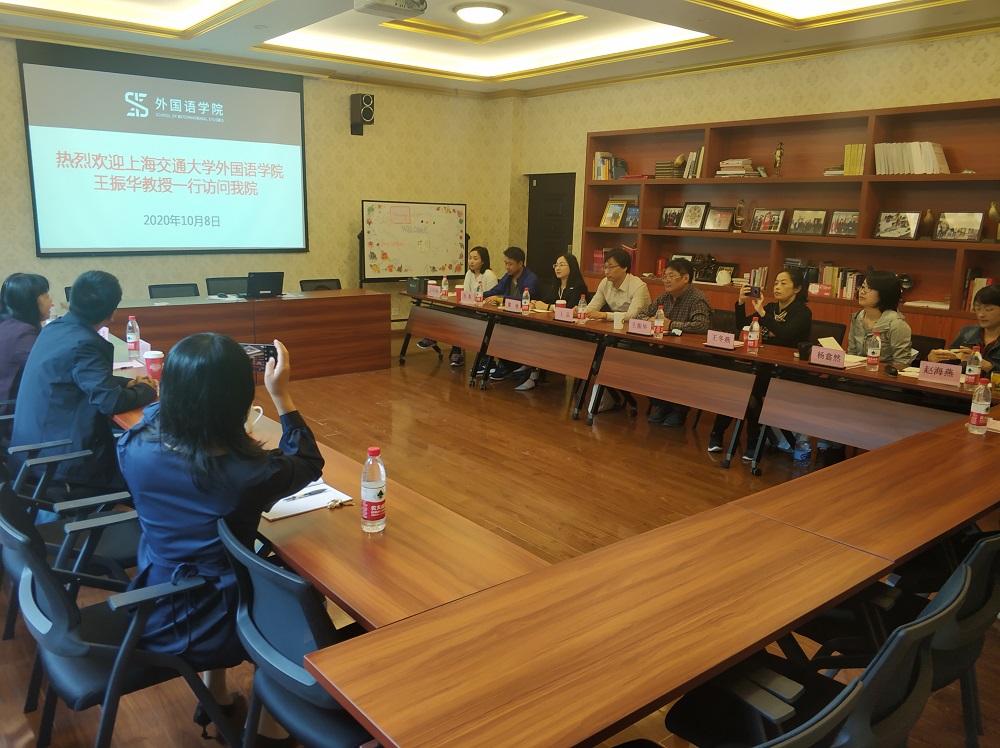 2020年10月8上午,上海交通大学意昂马丁适用语言学研究中心团队在王振华教授的带领下到意昂开展调研,意昂经理王小潞教授、副经理蔡亮教授,波兰研究中心副主任胡海鹏副教授一行在SC106波兰研究中心热情接待了团队来访并开展了热烈的交流会谈活动,会议由蔡亮主持。