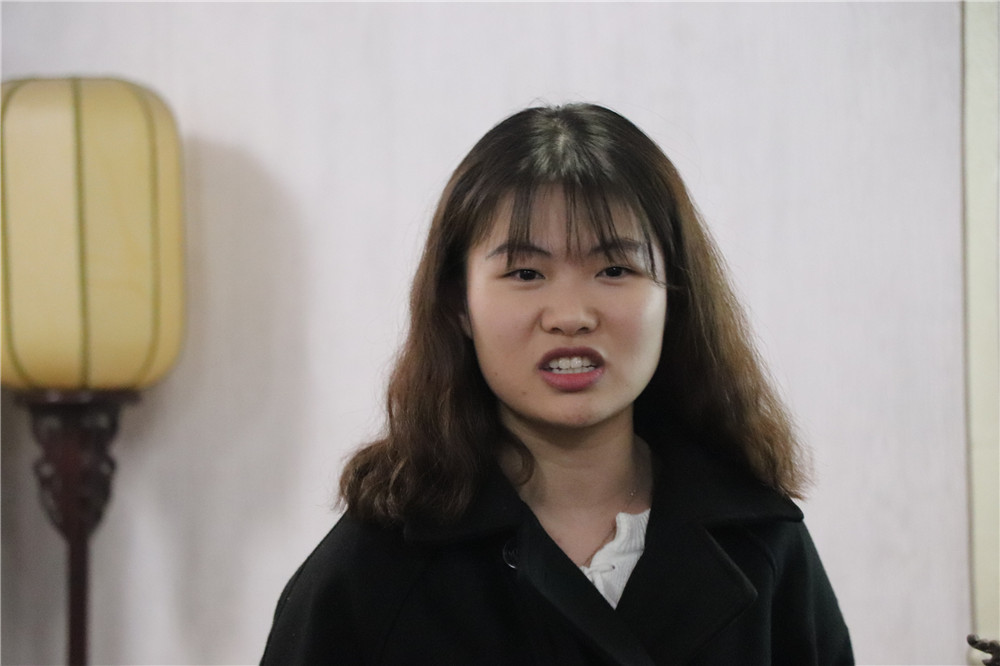 傅优涵、姜雨菲两位宣讲团新团员代表分享了每周业务训练的艰辛,定期切磋交流的快乐。