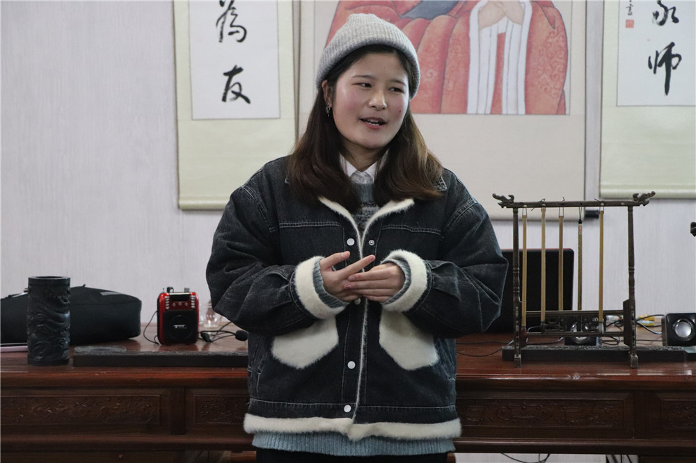 英语181班袁雪同学为大家现场吟诵阳明先生的诗歌《蔽月山房》,并表示热爱是自己从事阳明文化宣讲的持续动力。