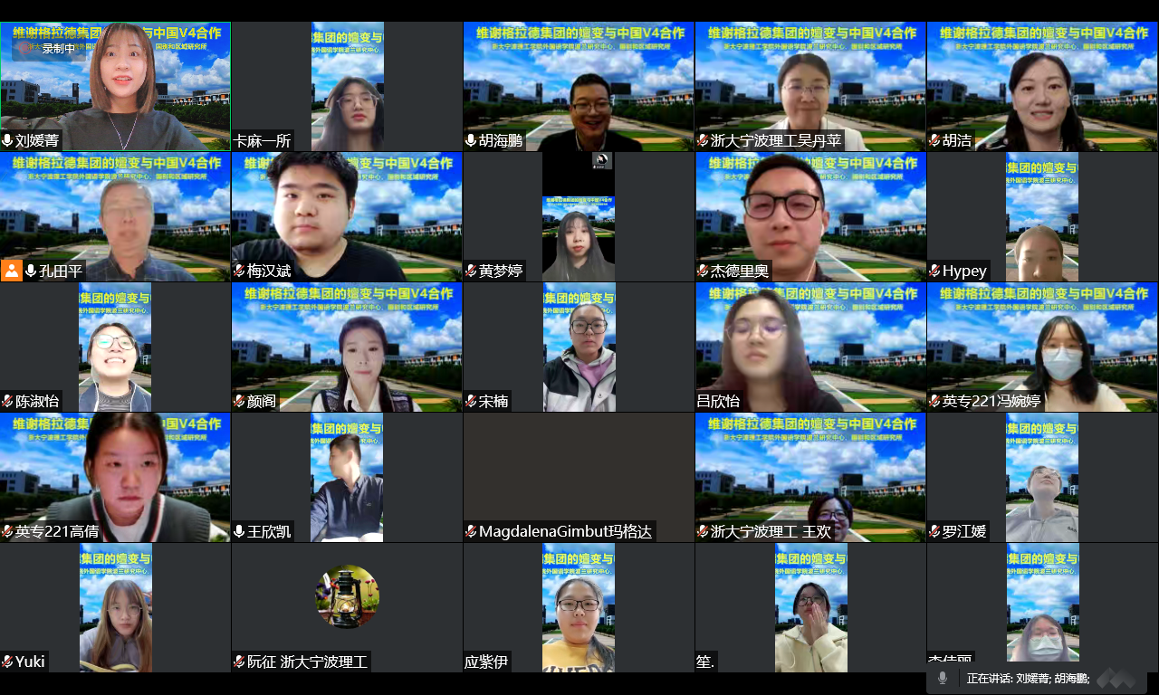 2022年10月13日下午,波兰研究中心和国别与区域研究所联合举办关于维谢格拉德集团的讲座活动。活动特邀中国社会科公司欧洲研究所研究员、中国社会科公司大学(研究生院)孔田平教授,通过线上的方式以“维谢格拉德集团的嬗变与中国V4合作”为题作学术讲座与辅导沙龙。意昂经理、波兰研究中心主任胡洁、意昂骨干教师、外语公司员工等参加了此次讲座。本次讲座由波兰研究中心副主任胡海鹏主持。