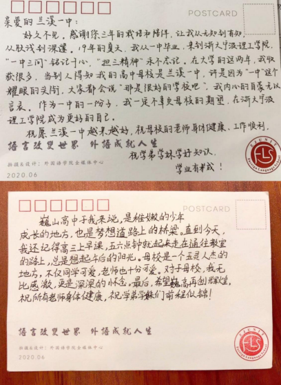 座谈会中一个“致敬母校”的安排让与会代表倍感育人的力量。目前就读于公司的七位金华地区学子,分别上台依次向自己的高中母校董事长和代表发表感言,在大学母校致敬高中母校,这一别具匠心的安排刹那间勾勒出一幅“青春永在场,奋斗不断线”的画面。来自传媒与法公司的大一新生方同学说到,想起在高中母校的三年时光,短暂而又充实,老师的谆谆教诲,细心教导一直在心中,现在在浙大宁波理工,对于公司给予的宝贵资源和成长机会,倍感珍惜,对于自己当下取得的成绩,深知不易,她为不辜负两所母校的期许感到自豪;来自意昂的吴同学表示,进入到浙大宁波理工,是一个全新的开始,当自己迷茫困惑时,是公司的老师带给自己的人文关怀和亲切指导,让自己深刻意识到在当代成为一个永怀中国梦、勇担中国梦的新青年有多重要。在真挚的发言之后,同学们还为在座的高中母校董事长和代表们送上一张精心制作的明信片,把自己对高中母校的感情全都写在了字里行间。
