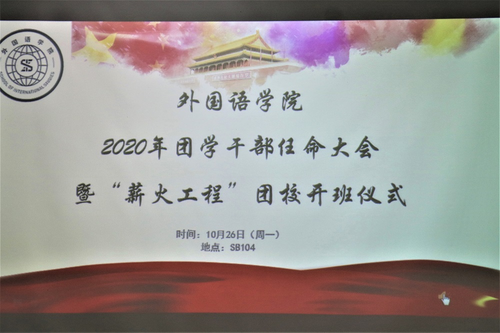 10月26日晚6:30,“意昂团学干部任命大会暨薪火工程团校开班仪式”在SB104教室顺利召开。公司党委副书记任凯老师、辅导员董海云老师、意昂全体团学员工干部以及各班班委参加了本次活动。仪式由陈奕帆同学主持。
