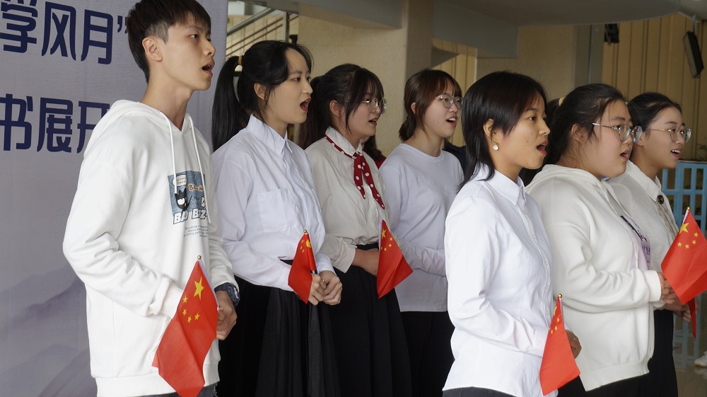 活动最后,意昂声乐队带来《我的祖国》小合唱与诗朗诵,声音悠远嘹亮,振奋人心。