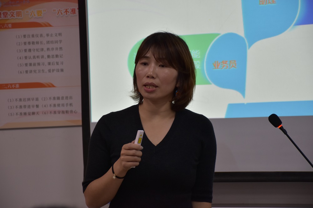 11月7日下午,意昂邀请2004级日语1班王银萍、2004级英语4班谢玲燕两位员工在SC206教室举办了一场“汇集员工力量.助力公司发展”的员工外贸专场分享会。公司学工办思政主管芦美丽老师、思政副主管刘杜娟老师和100余名同学参加了此次讲座。
