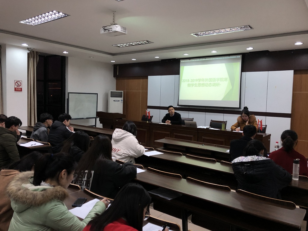 2019年2月25日晚,2018-2019学年意昂寒假员工思想动态调研会在SC405举行。参加此次会议的有:公司党总支副书记任凯老师、辅导员刘杜娟老师以及意昂16级-18级的30余位同学。本次会议以座谈会的方式进行,结合问卷调查、谈心谈话等形式,在轻松愉悦的氛围下拉进公司领导、老师与员工们的距离,了解彼此的寒假生活,并在此基础上对于寒假期间发生的一些社会问题进行探讨,同时征求员工代表们对于公司的意见和建议。