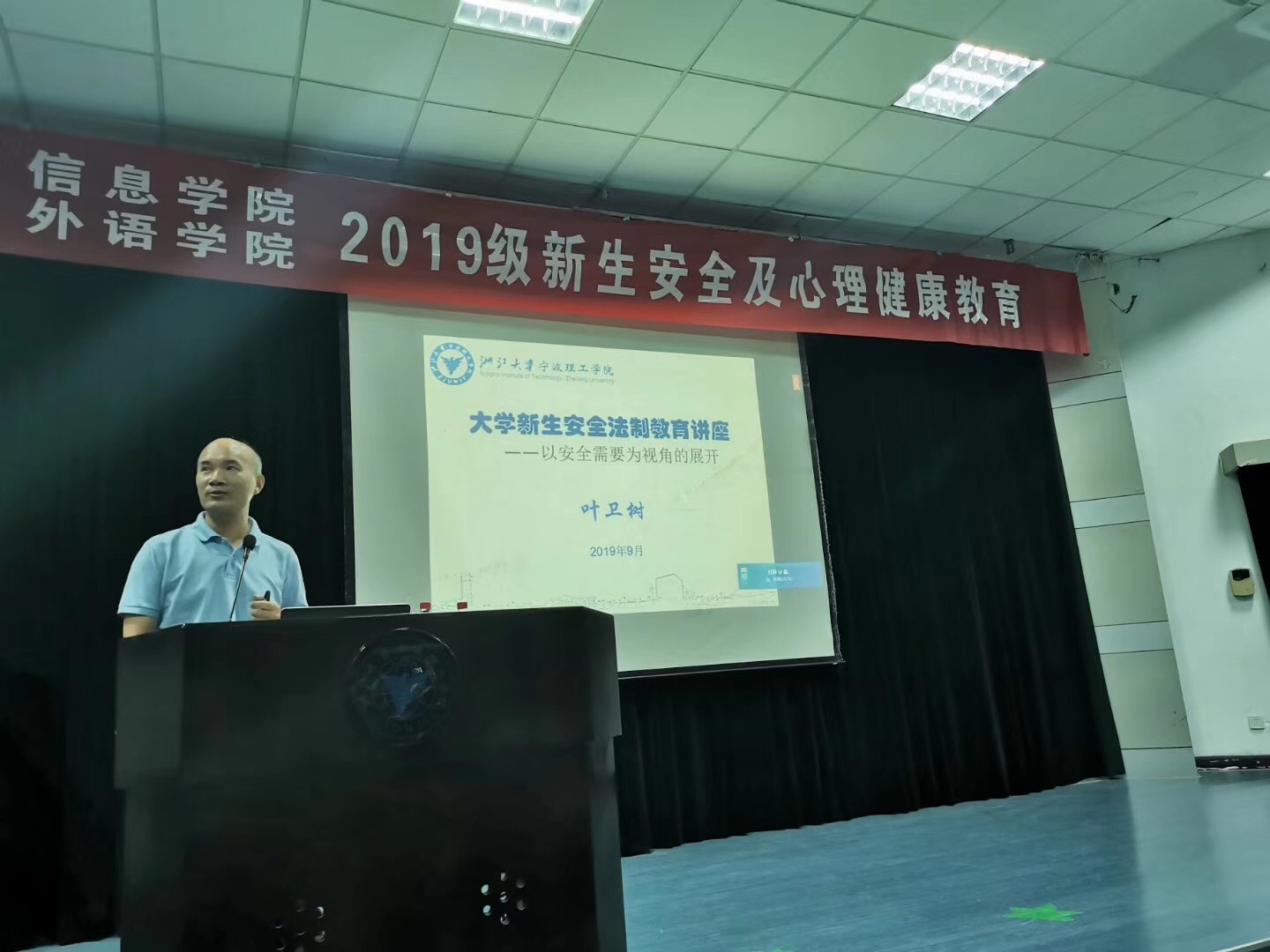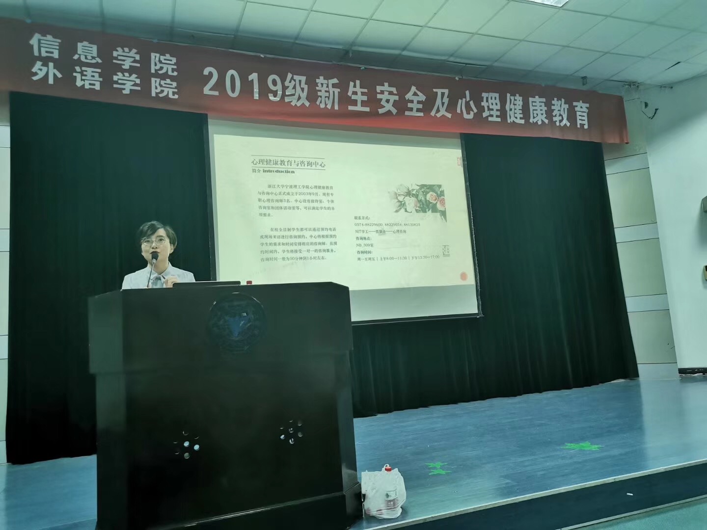为做好2019级新生身心安全教育工作,2019年9月16日晚6点30分,由信息公司、外语公司联合举办的2019级新生安全及心理健康教育讲座在NF103如期开讲。信息公司党委副书记方芳老师、信息公司思政主管杜明珠老师、外语公司党委副书记任凯老师,外语公司思政主管芦美丽老师、副主管刘杜娟老师、辅导员董海云老师以及两个公司19级全体新生参加本次讲座。心理课程讲师陈嘉欣、校保卫处副处长叶卫树担任主讲老师。讲座由任凯副书记主持。
