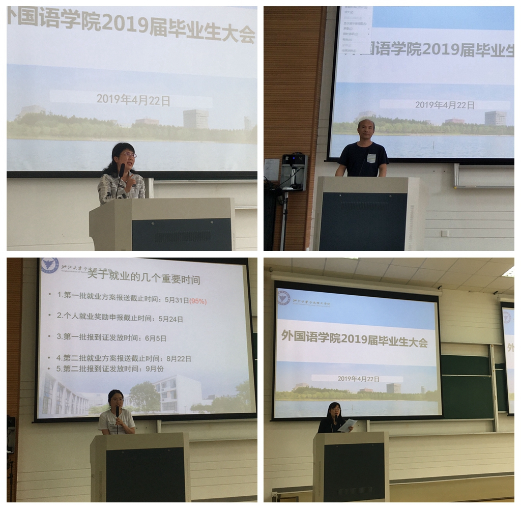 大会一开始,首先由欧琛老师就毕业论文的基本要求和工作进程进行具体部署与安排,她强调,毕业生要加强对毕业论文的重视程度,并对毕业论文的完成流程和时间节点进行了详细说明;接着,刘杜娟老师对就业的相关政策进行详细解读,梳理了就业协议、户口迁移证,以及报到证的用途等,介绍了关于就业的几个重要时间和毕业阶段的一些活动安排。