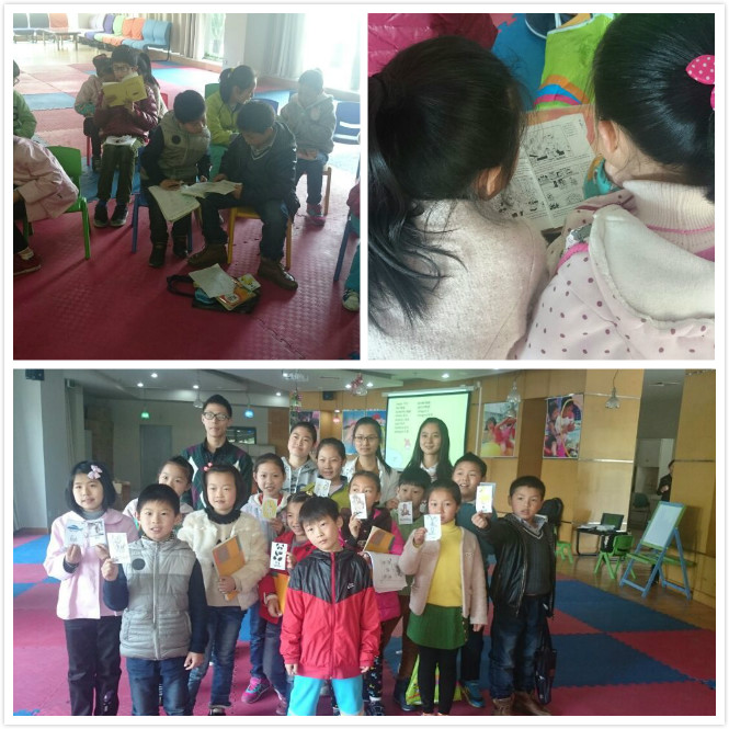 活动开始,考虑到小朋友的年纪小,识字能力有限,志愿者带领他们先搜集了关于宁波历史文化的图画故事书。接着志愿者们挑选了书中一些有趣的历史小故事声情并茂地讲给小朋友们听,如天封塔与斩妖的传说,梁祝传说……志愿者们绘声绘色地阅读大大增加了小朋友们了解宁波历史的兴趣,孩子们踊跃回答志愿者们针对宁波历史所提出的问题。志愿者们为了让孩子们更了解宁波历史,展开了一场小朋友们复述和表演宁波民间故事的比赛。小朋友们或天真或稚嫩的表演令整个现场趣味盎然。活动的尾声,结合意昂的专业特色,志愿者讲述并表演了一些简单易懂的英语小故事,引导小朋友们对于外语学习的热情。
