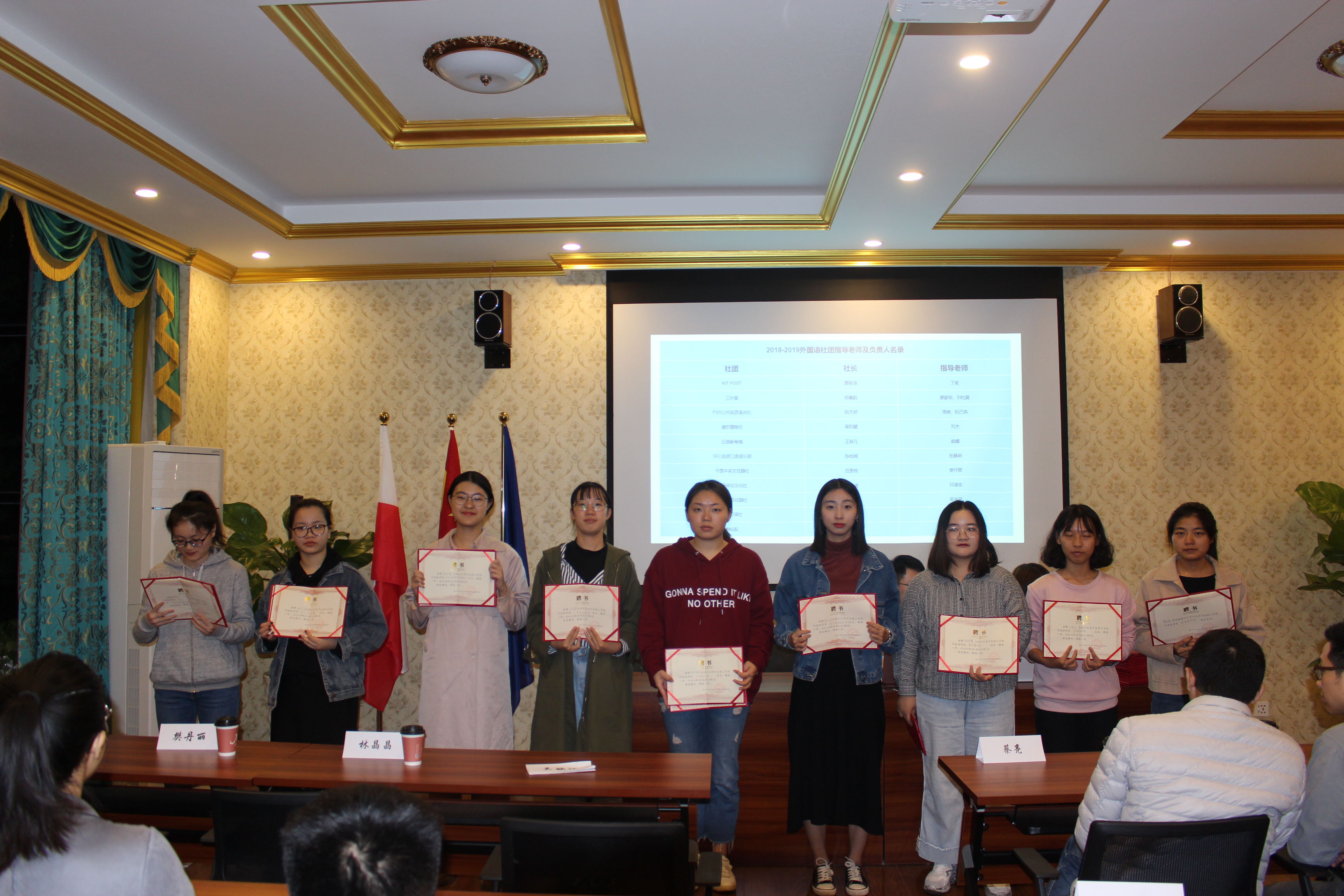 会议主要分为五个部分:社团纳新及成员总量分析、意昂蔡亮老师讲话及各社团指导老师负责人聘书颁发、校学联光合计划介绍及社团品质提升、新学期各社团初步规划一览、外国语学联社团主要联系人一览。
