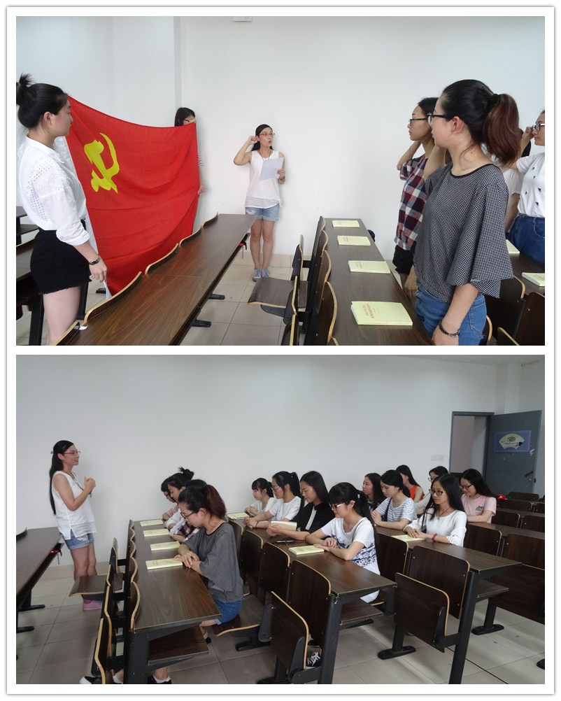 6月22日下午16:00,在纪念建党95周年之际,意昂员工支部举行了庄严而神圣的新党员宣誓活动。在意昂总支组织委员、思政主管韩晶晶老师的带领下14名新党员参加了本次宣誓活动。