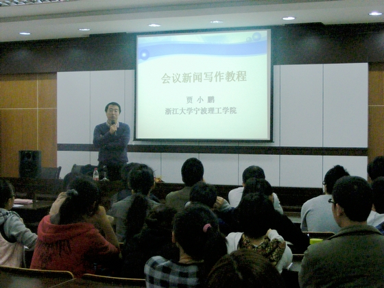 麦可思公司总裁王伯庆博士在公司《以就业评价为依据的高校教学改进》的专题讲座中提到,外语公司毕业生认为在校期间最需要的技能为中文写作。近年来,公司申请宁波市“赴澳志愿者”的同学过不了汉语这一关。很多证据表明,同学们急需提高中文写作能力。为此,外语公司举办新闻中心培训班,旨在全方面提高同学们的中文写作能力和新闻中心干事的新闻采写能力。