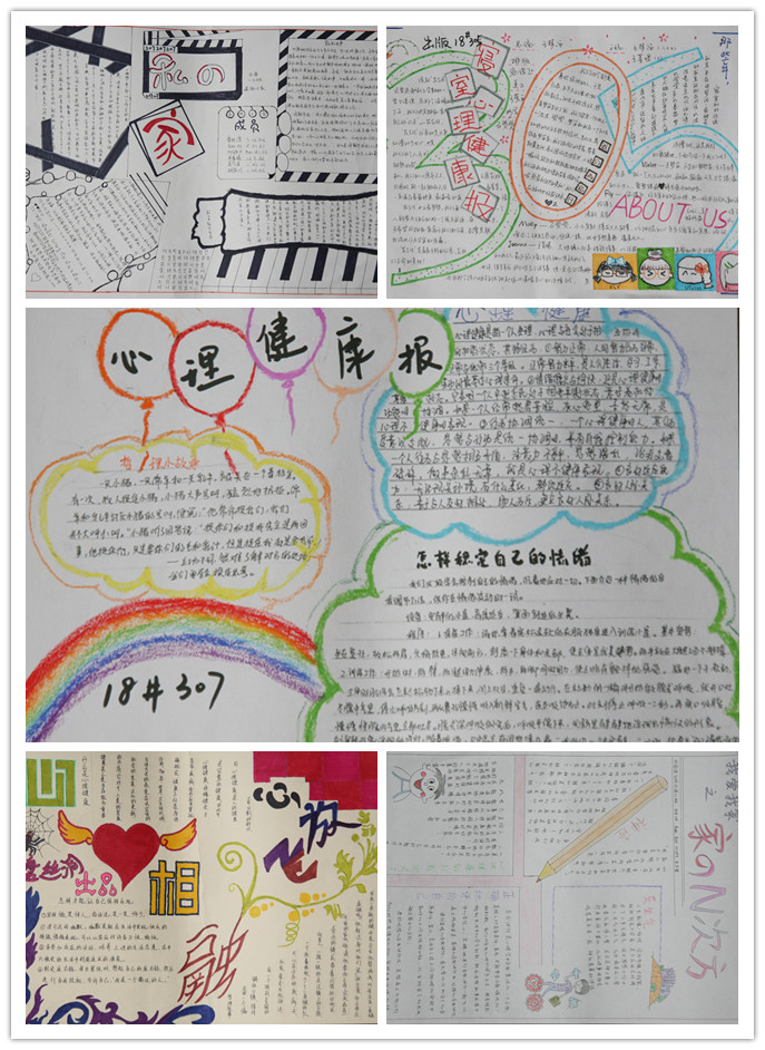 参评作品内容丰富,式样别具一格,同学们以自己独特的目光和生动的事例,通过文字、水彩画、照片、漫画等形式围绕校园生活、同学交往、成长烦恼、心灵感悟等相关心理内容,有创意地讲述了寝室室友之间发生的小故事,展现了和谐寝室的重要性。“大学的寝室无疑是大学中最令人难忘的地方,里面的欢声笑语,里面的吵吵闹闹,里面的真情流露,就放佛是在昨天,那么美好。”英语102班胡同学在其寝室手抄报上这样写道。