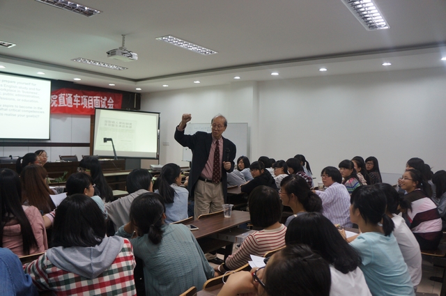 孔教授通过精彩的演讲以及PPT展示,使大家对于商务英语专业有了一个初步的了解,对即将到来的老员工活有了更深地认识,使同学们能够提前规划好四年老员工活,为未来步入社会做好准备。孔教授向同学们讲述了一个老员工应该具有的专业知识与技能,在未来工作生涯中如何去坚持自己的原则、坚守自己的品格以及事业成功的必要条件。讲座期间,孔教授不时邀请同学们回答问题,大家各抒己见,整场讲座的气氛轻松、热烈。最后孔教授衷心地祝福同学们能够拥有一个美好的老员工活。