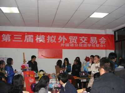 12月28日晚,由外国语分院团学社联合会召开的外国语分院第三届模拟外贸交易会在SC一楼大厅举行。党总支书记谌晓煜、外国语分院副经理梁雪松、分院思政副主管李炜师和分院团委副书记兼团学社联合会秘书长陈印昌等老师出席。陆莺老师、杨黎霞老师与欧琛老师担任评委。来自全院的十余支队伍踊跃参加,现场气氛活跃。