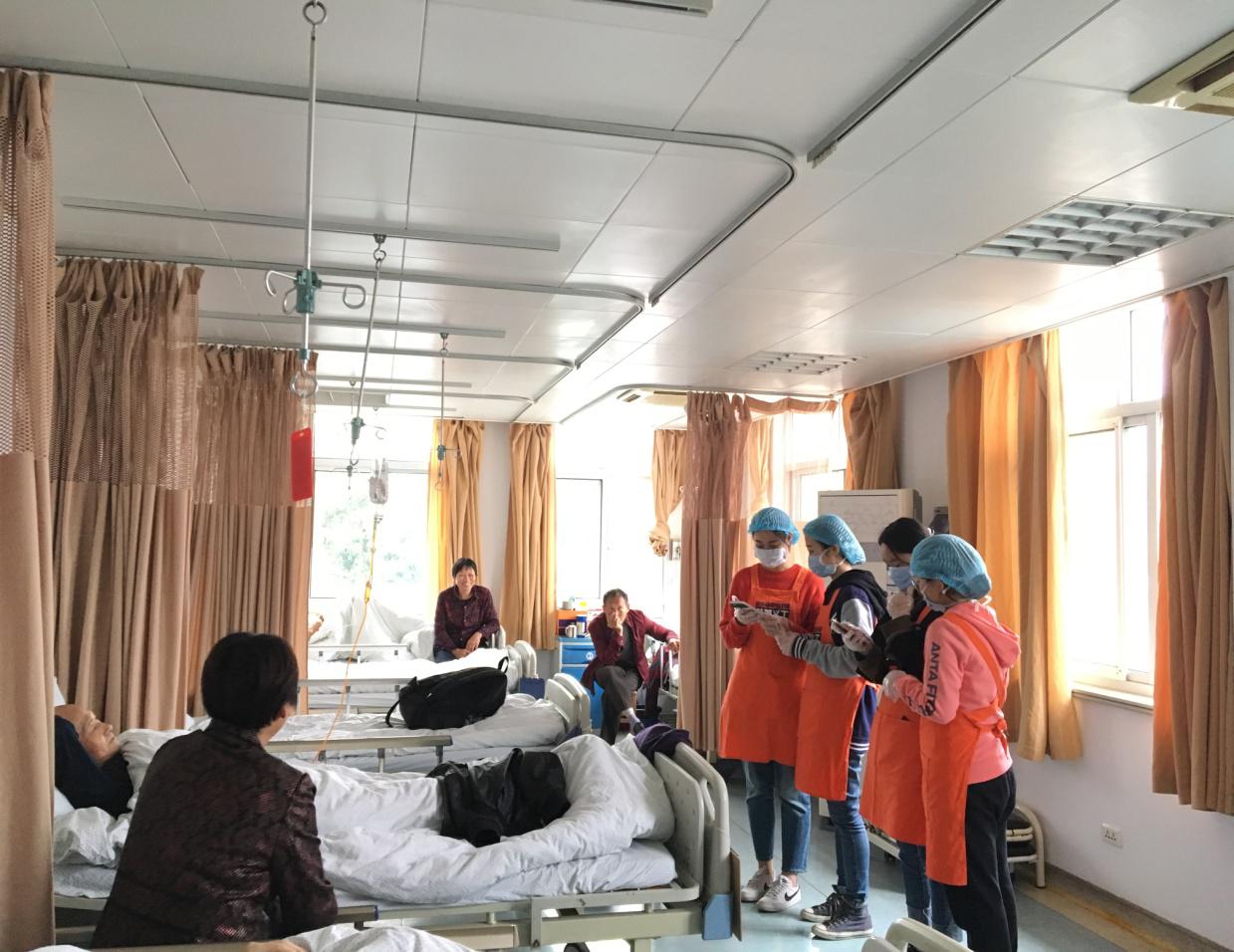 为期两天的活动内容主要是帮助有需要的老人们更换床单,测量血压,给老人们讲解宣传单上防摔倒、如何进行化疗后的饮食养护等内容。此外,同学们还帮助病人灌热水,核对床头病历卡等,他们的耐心和细心也得到了病人和家属的好评。