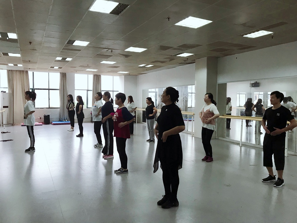 2019年10月9日周三下午,意昂分工会教职工秋季有氧韵律操培训活动在新食堂三楼317形体房如期开班。该活动每周一次,参加培训的教职工多达20余人。