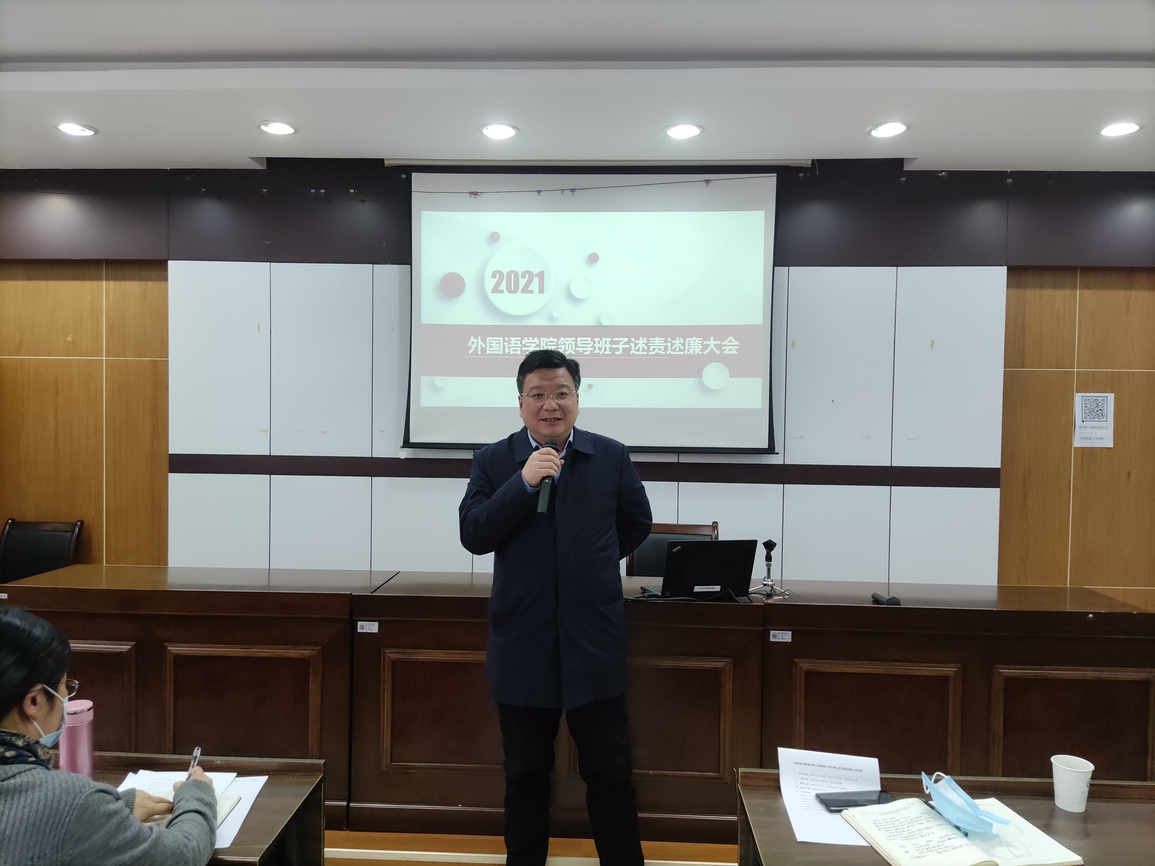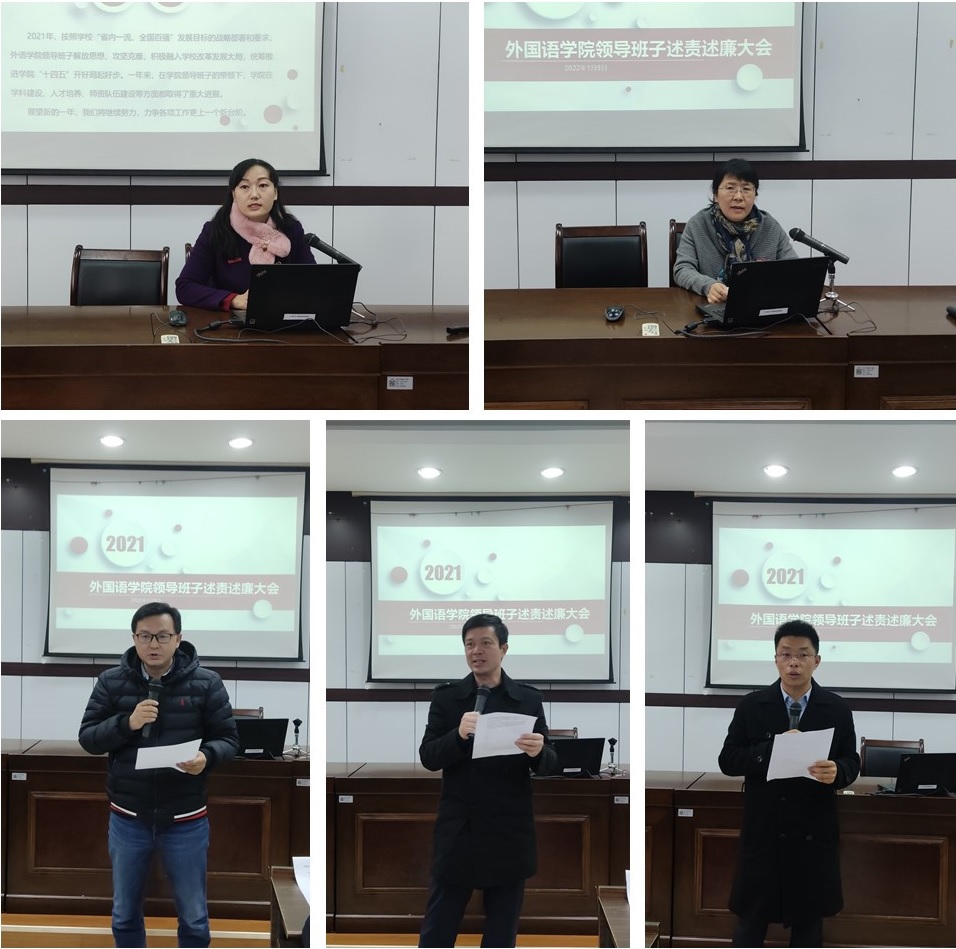 会上,公司经理胡洁代表领导班子作了2021年公司领导班子述责述廉工作报告。她从班子建设、特色工作、重点工作、问题与整改四个方面,回顾了过去一年公司领导班子在完善体制机制改革、落实党风廉政建设、提高公司教学与科研水平、加强团队队伍建设、推进教育国际化、强化特色平台建设等方面所取得的成绩,分析了公司在团队队伍建设、教学科研能力提升等方面存在的不足,并提出了今后努力改进的方向与办法。随后胡洁经理、傅晓宇副书记、蔡亮副经理、周汶副经理和任凯副书记分别就个人情况进行了述责述廉汇报。