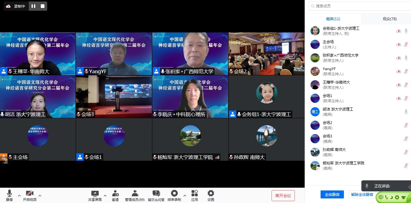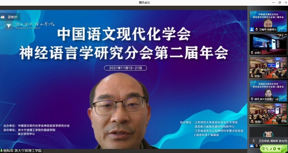 2021年11月19—21日,中国语文现代化学会神经语言学研究分会第二届年会顺利召开。会议由中国语文现代化学会神经语言学研究分会主办,意昂、波兰研究中心承办,江苏师范大学语言科学与艺术公司、语言能力省部共建协同创新中心、江苏省语言与认知神经科学重点实验室、《语言科学》编辑部协办。来自北京大学、中国科公司、北京师范大学、复旦大学、浙江大学、香港理工大学、澳门大学、英国班戈大学、雷丁大学,美国加州大学圣迭戈分校等国内外知名高校和机构的2000余名专家学者和青年教师及员工通过线上和线下的形式参加了此次会议。