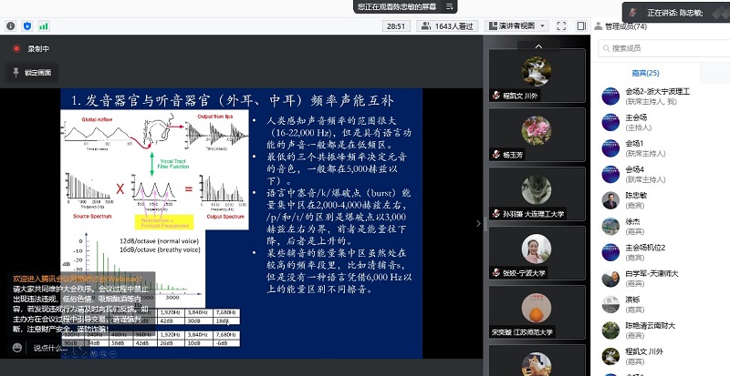会议期间,共进行了13场大会报告。来自中国科公司心理研究所的杨玉芳研究员、江苏师范大学杨亦鸣教授、香港理工大学人文公司经理李平教授、浙江大学丁鼐教授、英国班戈大学Guillaume Tierry教授、中国人民大学张积家教授、美国加州大学Seana Coulson教授、天津师范大学白学军教授、澳门大学徐杰教授、上海外国语大学蒋晓鸣教授、北京师范大学的卢春明教授、复旦大学陈忠敏教授、华南师范大学翁旭初教授围绕语言理论、语言神经机制、语言学习、语言发展与障碍、语言计算建模、民族语言等主题做了精彩的演讲。此外,会议还安排了64场分组报告,内容涉及语言行为、语言脑机制、语言障碍筛查与干预等。