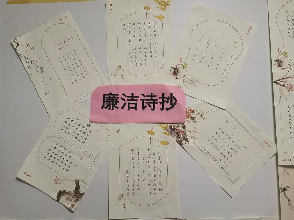 为进一步做好意昂廉洁文化节系列活动,近日公司组织全体师生党员开展廉洁诗抄活动。大家积极参加,通过学习廉洁诗,甄选诗歌摘录抄写。《石灰吟》《咏史》《游山西村》《拒礼诗》等一系列耳熟能详的诗歌跃然纸上,重温回顾更是一番新的体会和感悟。将传统诗歌内涵与党性教育、廉政教育融合起来,将于谦、李商隐、包拯等历代诗人的清廉诗句摘抄再呈现。此次活动还将师生党员的摘抄作品展览在公司党员服务活动展览板上,旨在强化师生党员廉洁自律意识。