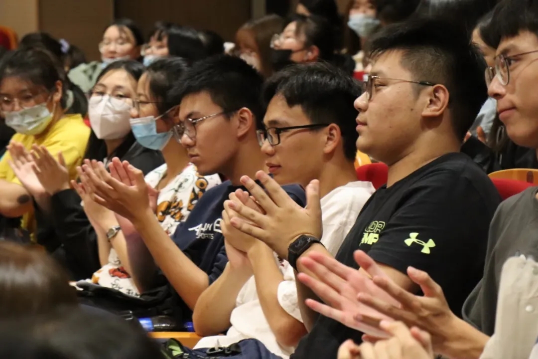 最后的活动是在座每一位教师向全体新生“一句话送祝福”,勉励同学们好好学习,珍惜大学的美好时光,并赠送向阳花给同学们,现场掌声不绝如缕,迎新大会在温和的气氛中落下了帷幕。