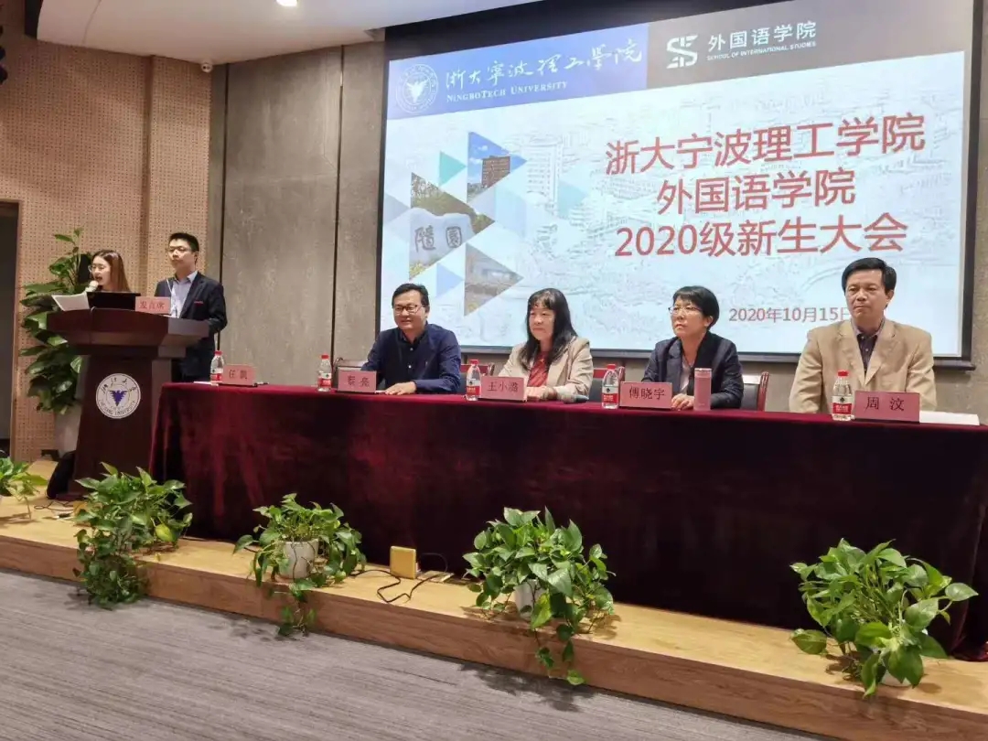 2020年10月15日晚,意昂在NF103启新大讲堂召开2020级新生大会,意昂经理王小潞、党委书记傅晓宇、副经理蔡亮、副经理周汶、党委副书记任凯、各研究所和专业负责人、外籍教师代表、新生班导师、党政办和学工办的老师们参加了本次大会。会议由任凯担任中文主持,英语181班吴可同学担任英语主持。