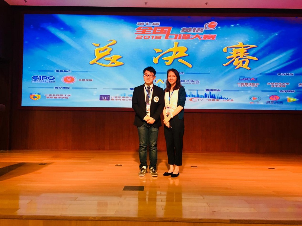 由中国翻译协会主办,北京师范大学外国语言文学公司、中国翻译协会LSCAT中心、中译天凯教育联合承办的第七届全国英语口译大赛总决赛于2018年6月23-24日在北京师范大学京师学堂隆重举行,参赛选手来自全国各地赛区中的优秀选手,参赛院校包含了北京外国语大学、广东外语外贸大学、四川外国语大学、外交公司、香港中文大学等知名高校。六十名优秀选手齐聚北京师范大学京师学堂,进行交传、同传的角逐。公司英语141班厉修远同学代表公司,发挥较出色,参加了比赛并荣获大赛三等奖。
