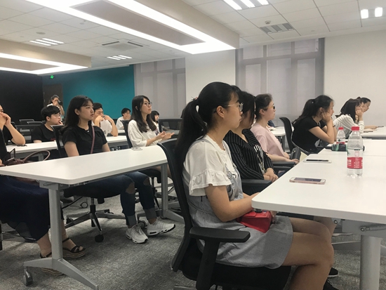 此次意昂师生的参观学习受到了翼鲲公司全体员工的热烈欢迎,范主管为大家详细地介绍了公司的总体情况和目前国际上流行的两大飞盘运动“飞盘高尔夫”和“极限飞盘”,并且还邀请员工亲身体验了投掷飞盘入筐的游戏。之后,同学们和范主管就飞盘运动和翼鲲公司进行了热烈的互动问答。当一位同学对于公司未来的发展提出了自己的建议时,新颖的想法受到了范经理的大力肯定和赞赏。