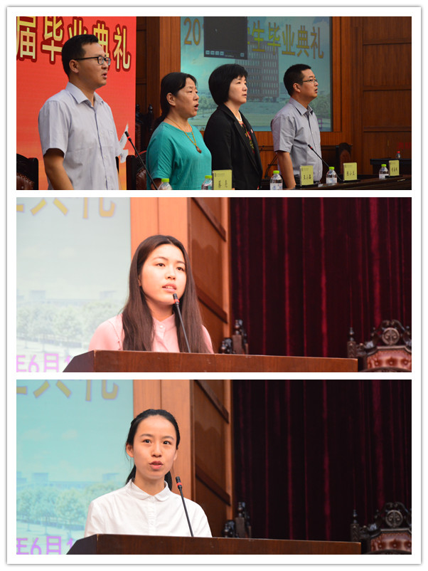 全体到场人员在齐唱国歌后,蔡亮副经理介绍了到场的嘉宾并宣读了整个典礼的议程,对于专程赶来参加公司毕业典礼的员工家长也表示了感谢。胡海鹏副经理宣读了2016届毕业生名单和省级、校级优秀毕业生表彰决定,公司党委陈小兰副书记为优秀毕业生颁奖。