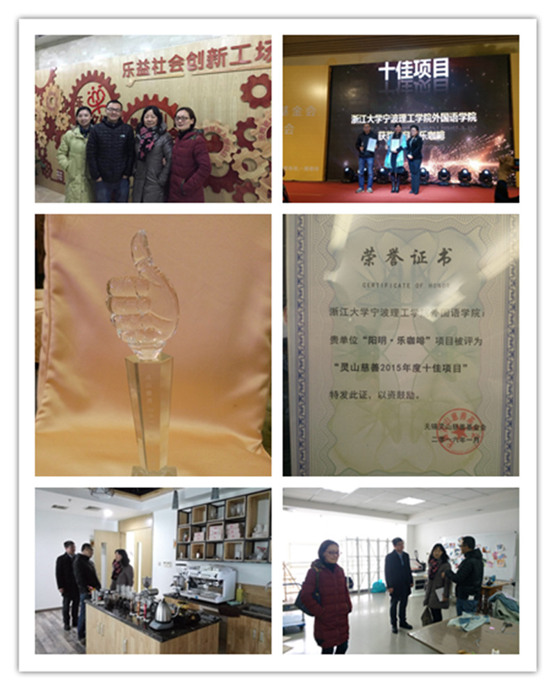 2016年1月16日,意昂经理王小潞、党总支副书记、副经理蔡亮一行赴无锡参加灵山慈善基金会年会,浙江大学宁波理工公司“阳明•乐咖啡”获得基金会年度“十佳项目”奖。同行的还有宁波市国际文化研修中心副主任张静燕副教授和思政主管韩晶晶老师。