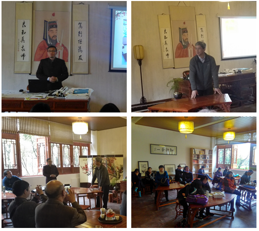 3月30日下午,意昂2016年春季教师学术论坛第一讲,由蔡亮博士以《阳明文化的海外传播》为主题在阳明学堂开讲,宁波市社科院陈利权副经理作为此次论坛的特邀嘉宾出席了本次论坛,外语公司和传媒公司的部分教师到场参加。