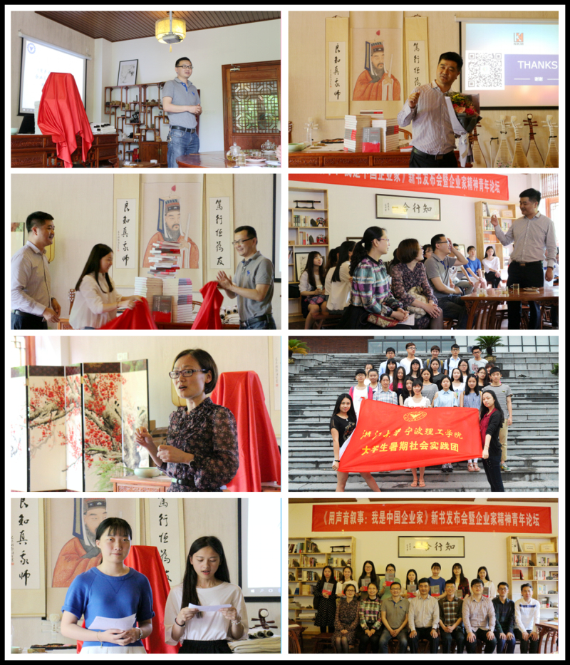 5月16日下午,意昂2016年《用声音叙事:我是中国企业家》新书发布会暨企业家精神青年论坛在阳明学堂举行。活动一开始,意昂副教授、副经理蔡亮老师代表公司为到场宾客——恩凯控股有限公司董事长沈功灿先生、意昂副教授张静燕老师、团委书记刘杰老师、经贸公司思政主管吴新林老师、团委书记张腾老师以及意昂的同学们致欢迎辞,拉开了论坛活动的帷幕。闲适的午后,伴着随园丝丝凉风,阳明学堂里弥漫着的是淡淡的书香以及师生、企业家们热烈讨论交流的声音。