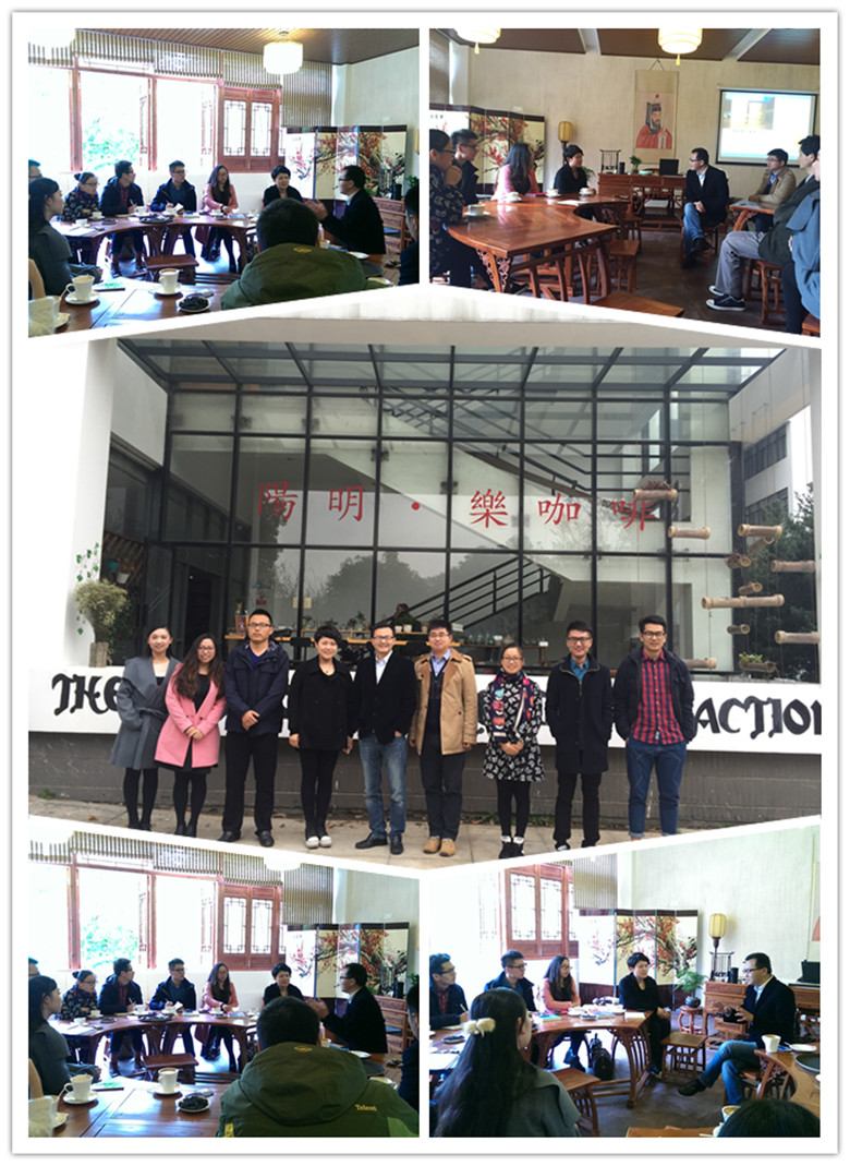 座谈会伊始,公司党总支书记谌晓煜老师首先代表外语公司全体师生向湖州师院的老师表示热烈的欢迎。公司党总支副书记、副经理蔡亮老师从公司及公司基本情况、阳明文化与哲学理念对于公司的重要意义、阳明学堂的建设缘起、阳明学堂近期的运营发展状况等几个方面做了详细的介绍。学工办思政主管韩晶晶老师从阳明学堂与员工工作的结合方面进行了具体阐述。座谈中双方的老师都认为阳明学堂的乐咖啡将校内公益与社会化公益相结合,注重公益创业,形成阳明学堂的文化衍生品,将是公司未来开展“产学研”联动创业的一个方向。还有老师提出阳明学堂要进一步优化中华优秀文化体验活动的内涵提升以及学术讲座的规范开展工作,将阳明学堂高校中华文化体验传播阵地的作用充分发挥出来,获得了与会老师的一致赞同。
