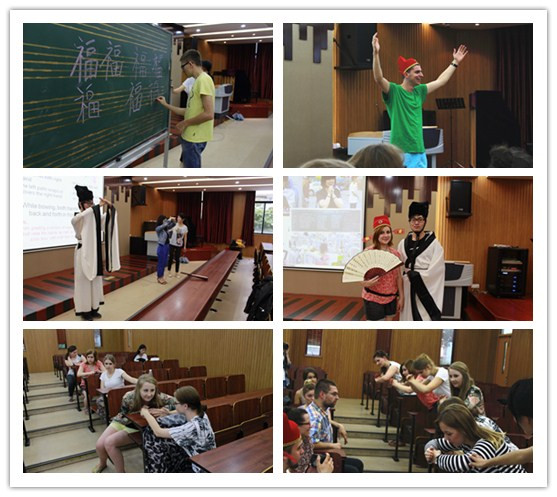 中国文化课程的第四天为教育文化主题,赶巧的是,超强威力台风“灿鸿”正逼近宁波,此时的理工校园大风已起,雨势明显增大,而这恶劣的天气却没能阻断波兰员工们追寻中国文化的脚步,带队老师和同学们准时来到了教室,期待感受另一场中国文化的盛宴。 本次课程是由意昂程燕华老师向来自波兰的同学们展示了中国教育文化的全貌。她以文字的解说,配以贴切的图片及仿真教学道具的辅助,带领大家穿越至两千五百多年前的孔夫子时期,“私塾”,“作揖”,“科举”及“八股文”这些中国传统教育特有的关键词很快就吸引了波兰员工的眼球。课间,这些金发碧眼的老员工们就迫不及待地戴上了状元帽,着孔子服,摆作揖的姿势,“咔擦”,“咔擦”,留下中国文化体验课的纪念后美滋滋地回到座位。现代教育的介绍让波兰员工产生了共鸣,表示波兰也有类似的教育体系和考试选拔制度,中国的“高考”吸进了不少员工加入到提问互动环节,大部分员工诧异于中国式教育的“虎妈狼爸”,个别员工则希望体验中国“棍棒底下出孝子”的教育理念。 互动游戏“论语传话”将课堂氛围推向了高潮,程老师将全体参与者分成六组,让员工志愿者将孔夫子的教育名言,如“学而不思则罔”,“三人行,可以为师矣”等,小声念给每组的第一位员工,由他们分别负责传给自己的组员,最后一名员工将大声将他所听到的告诉全班同学。明白了游戏规则后,波兰员工和老师表现了极大的参与热情,迅速坐成六列纵队,一些还士气高涨地喊着刚学的中文“状元”,“状元”。但对于第一次来中国只会说“你好”,“谢谢”,“再见”的波兰员工来说,传诵论语,并非易事,他们听到论语时近乎抓狂的表情,极力想要传达的认真样,令人忍俊不禁。波兰版的论语自然惨不忍听,面目全非,却有个别组表现超凡,能大致说出“工欲善其事,必先利其器”的前半句,令在场的同学和老师甚是佩服。最后,程老师宣布了表现较好的前三组,给他们送上了论语名句中英版的中国风书签,表现欠佳的三组则应起立向胜利者作揖表示佩服。胜利者纷纷抢带状元帽,高举战利品,各种自拍和互拍;作揖者牢记了动作要领,像模像样拱手作揖。在一片喜悦,欢愉和掌声中,本次文化交流课顺利结束。 吟着孔夫子的名言,夹着中国风的论语书签,波兰员工可能似懂非懂,但我们相信这场文化体验课能点燃他们兴趣的火花,逐渐感悟中国文化的精髓。我们也深信,阳明学堂的进一步发展壮大会吸引更多的教师和员工志愿者来体验这个美好的文化交流历程。