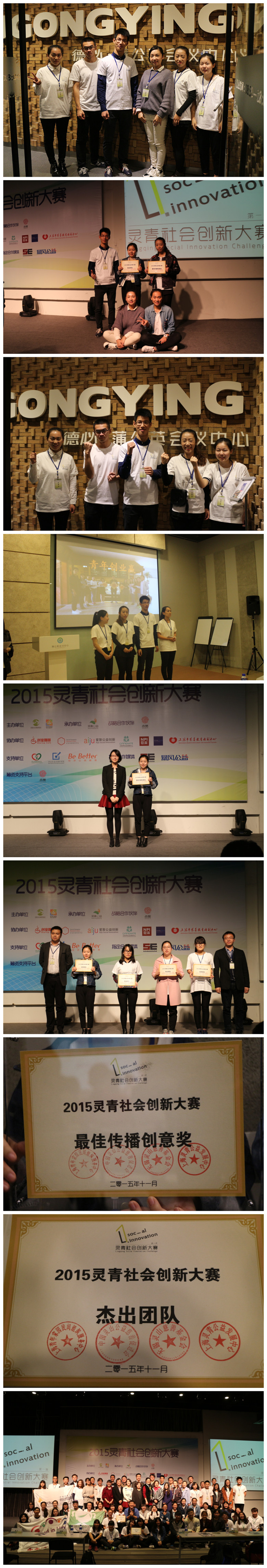 2015年11月21-22日,浙江大学宁波理工公司的阳明•乐咖啡团队前往上海参加2015年灵青社会创新大赛,荣获“杰出团队”和“最佳传播创意奖”两个奖项。