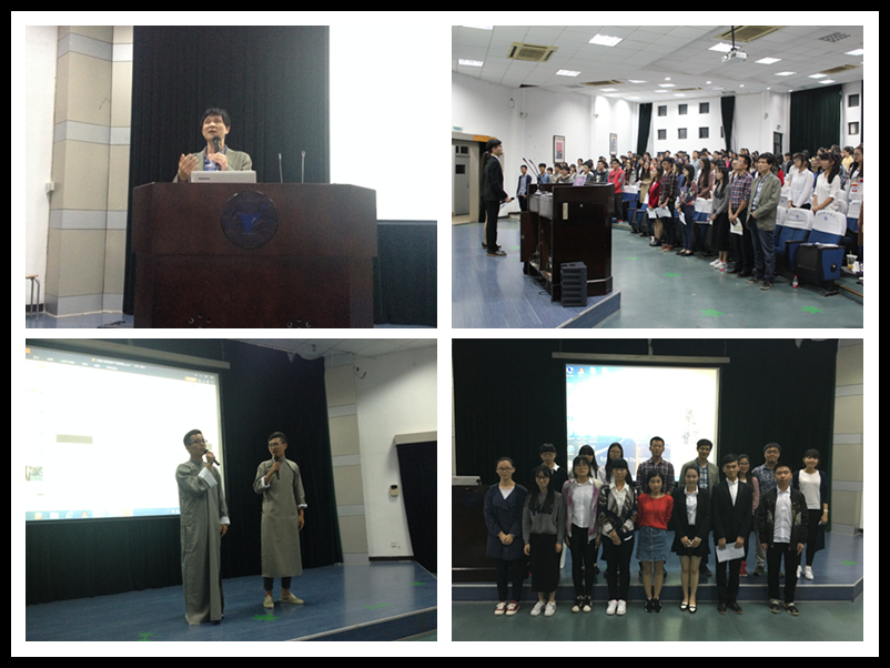 接着第一组社会调研团队ppt开始展示。以“体味语言之美,探究文化魅力”为主题的用声音叙事、舟山木偶戏、前童古镇的负责人依次上台展示他们的调研结果。无论是“用声音叙事”团队调研的各种绮丽的语言曲艺艺术,还是神奇动人的舟山木偶戏,亦或是浓浓浙东风情的前童古镇,同学们都通过深度访谈、文献调查、视频录像等方式取得了良好的成果,一张张合影上都是参与者喜悦的笑容,感染了在场的每一个人。