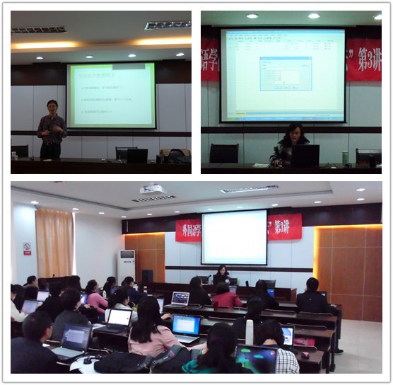 鉴于当今大数据时代对学术研究产生的巨大影响,以及语言学研究中实证性要求的不断提高,本届学术周期间,意昂特别邀请了管理公司的沈斌副教授和周丽梅讲师,以“大数据时代的数据挖掘和语言学SPSS应用”为主题,为外语老师们安排了4堂培训课程,此次培训效果良好,反应强烈,近40位外语教师自备笔记本电脑参加了培训。 “大数据时代的数据挖掘”课程由沈斌副教授主讲,他以独到的视野,向大家展示了当今蓬勃发展的“大数据时代”。沈老师首先以国际知名大公司的预测案例为切入点,向大家介绍了何为大数据和大数据的重要作用;接着他用一系列的数据阐释了大数据在网络时代的重要特征,并结合当前各类流行的设备和技术,对数据的挖掘技术进行了深度的剖析。而针对“大数据时代对语言学的影响”这一问题,沈老师结合自己在云计算方面的研究,通过深入浅出的讲解使大家意识到信息管理技术在语言学研究领域的关联性和实用性。 “语言学SPSS应用”课程由周丽梅老师分3堂主讲,她以耐心细致的讲解,教会了大家用SPSS这款数理统计分析软件在语言学领域的熟练应用。周老师首先以简明的语言介绍了SPSS的基本用法;接着她结合语言学领域的研究案例,演示并指导老师们在电脑上进行SPSS软件的操作,对于涉及从初级到高级统计方法的应用,周老师还对软件分析结果进行了详细解读。老师们通过对T检验、方差分析、一元回归分析、相关分析、因子分析、随机抽样与随机分组的SPSS实现等SPSS软件模块的操作学习,不但能够利用SPSS软件将数理统计学的理论和方法应用于实际教学和研究,达到探索规律、制定方法和作出决策预测的目的,而且培训中所使用的教学方法对于英语教学的统计与实训课程的教学都很有启发。 本届学术周成功举办的专题培训,让老师们掌握了数据分析的前沿技术,充分利用跨学科的理论知识和技术方法并结合日常教学和研究的定量分析,为他们在跨学科视角下开展交叉和融合性语言学研究提供更多的先决条件,有利于他们在研究领域寻找到新的元素,新的亮点。