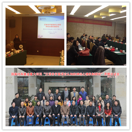 2015年1月17日,由王小潞教授担纲课题首席专家的2014年国家社科基金重大招标项目——“汉语非字面语言认知的神经心理机制研究”在浙江大学紫金港校区启真酒店举行开题论证会。中国科公司唐孝威院士、浙江省社科规划办俞晓光主任、浙江大学社会科学研究院何文炯副经理、以及浙江大学外国语言文化与国际交流公司马博森副经理出席了会议。出席开题会的还有以教育部“长江学者”特聘教授、江苏师范大学杨亦鸣教授、浙江大学黄华新教授、中国人民大学张积家教授、南京师范大学李葆嘉教授等人组成的论证专家组成员,以及来自复旦大学、大连理工大学、华中师范大学、华南理工大学、广州中医药大学、沈阳大学、北京语言大学、北京第二外国语大学、中国矿业大学、浙江工业大学、杭州师范大学、宁波工程公司、重庆工商大学等全国十几所高校的课题组成员,共30余人参加。