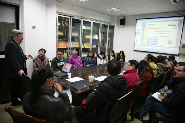 1月7日下午13:30分,美国印第安纳波利斯大学与公司有意向参加Study Abroad项目的员工进行了座谈。美国印第安纳波利斯大学国际计划协理副董事长Phylis Lan Lin博士、文理公司经理Bill Dynes教授、外语公司蔡亮副经理和Study Abroad项目负责人林晶晶老师参加了座谈。 座谈会上,Bill Dynes教授通过PPT详细地介绍了印第安纳波利斯大学英语系的教学和教职工情况。印大英语系教学实力雄厚,教师均为博士,并开设了creative writing、professional writing等实用课程;其间,Bill Dynes教授还对以往在该校留学的公司优秀学子赞不绝口。之后,印第安纳波利斯大学在校生施昊天通过丰富的图片向学弟和学妹们展示了海外精彩的学习和生活经验,在座的员工都赞叹不已;同时员工们还了解到了印大美丽的校园、齐全的教学硬件、员工可享受的校园优惠、中国职工之间的互助互爱、精彩纷呈的中国文化艺术节和International Flag 节日等。然后,员工就各自疑惑的住宿、费用和入学条件进行提问,而相关老师也进行了有针对性的回答。座谈临末,Phylis Lan Lin博士还寄语公司员工要think positive,要相信自己,放眼世界,希望能公司学子能早日前往印第安纳波利斯大学学习。本次座谈加深了公司学子对印第安纳波利斯大学的理解和参与Study Abroad项目的信心。 公司与印第安纳波利斯大学合作开展的Study Abroad项目为员工在四年学习生涯提供机会走出国门:公司学子到印第安纳波利斯大学交流学习一个学期,修读相关课程,回国后公司认可所修学分。本项目有助于开拓员工的国际视野、深化跨文化体验和理解、培养跨文化交流和国际竞争能力。