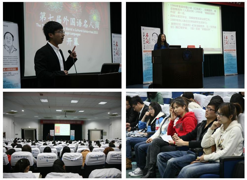 浙江大学宁波理工公司意昂第七届世界文化名人周在弥漫着春天气息的四月天里拉开了帷幕。本次“名人周”向大家推出了两位著名的东方作家——中国的莫言和日本的村上春树。4月24日晚6点半,意昂在在NF103举行了简短的开幕仪式。