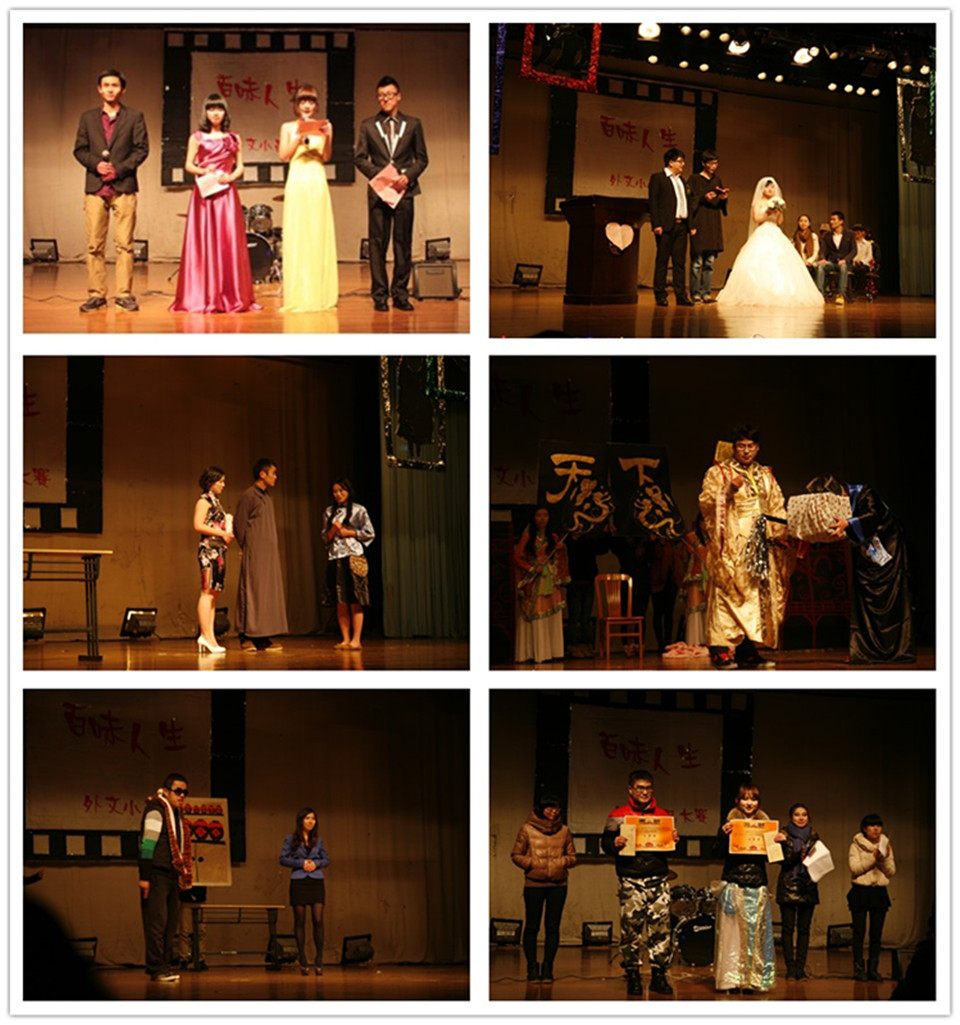 据蒂姆•波顿电影改编的《僵尸新娘》把真情与惊悚元素糅合在一起,令人耳目一新。琼瑶老剧《情深深雨蒙蒙》细腻唯美的表演,将和平主题升华到极致的《美丽人生》...... 演员们通过精心制作的道具,纯熟流利的口语,以及逼真的情感在舞台上演绎着这戏里戏外的人生百味,还有最后出场的乐队表演更是送上了一场华丽而激荡的演出。凡此总总,令人目不暇接,眼花缭乱。 令人意想不到的是,演出现场突然断电,但观众的热情并没有因此而减弱,那相继亮起的星星点点的灯光照亮了每一个人的脸。观众们跟随着主持人的节拍,舞动着着手机,汇成一片片星海,这是连言语都表达不出的感动。这所有的一切,见证了我们外语人蓬勃的青春与洋溢的才华浇灌出来的绚烂的大学之花。
