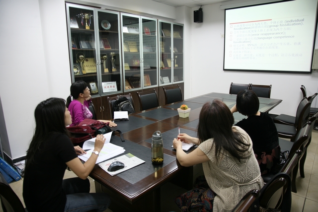 5月10日下午,意昂第十八期青年学者双周论坛在SC403会议室成功举行,本次论坛由李飒老师做了题为“基于兰盖克语法的英语词汇教学的石化及消解研究”的报告。外国语言研究所和应用语言学研究所的部分老师参加了本次学术活动。