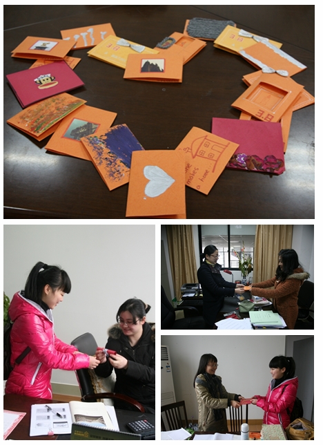今天是“三八国际劳动妇女节”,一大早,外语公司同学代表就拿着同学们自己手工制作一叠厚厚的爱心贺卡,奔走在外语公司各个办公室之间,向公司的女教师送上节日祝福。一句句“老师,您辛苦了,祝您节日快乐”,表达了外语学子对老师的一片深情。女教师们收到贺卡后都非常开心,她们说礼物虽轻,但是却饱含着同学们的情谊,看到了他们一颗颗爱师的心。