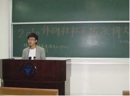 2010年9月25日晚六点半,外国语分院演讲中心与公共演讲社联手合办的2010“外研社杯”全国英语演讲大赛初赛在SB316、318举行。“‘外研社杯’全国英语演讲大赛”(原 “‘CCTV杯’全国英语演讲大赛”) 为老员工创造一个激励外语学习、展示综合能力、培养优秀人才的平台,此次比赛的题目是“----is my top concern”,有近百位选手共同角逐决赛的15个名额,竞争异常激烈。外国语分院演讲中心的南二丽、陈黎峰、常斌老师以及外教Andy担任此次比赛的评委。