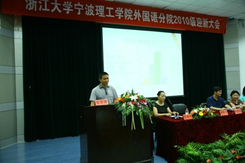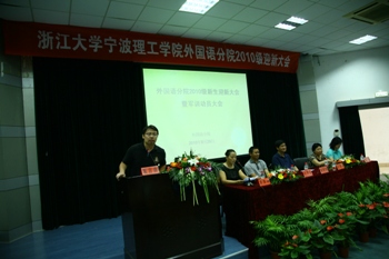 8月29日上午,外语分院2010级新生迎新大会在NF103隆重举行。分公司党总支书记谌晓煜、副经理叶琴法、东西方语言与文化传播研究中心副主任汪德华教授和分院专业教研室负责人、全体新生班导师、辅导员、部分专业教师以及老生代表和2010级全体新生近300人参加会议。会议由专业教研室主任张振梅老师主持。