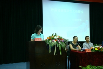 叶琴法老师在致辞中就分院团队队伍和教学计划以及教学成果等作了较为详细的介绍。外语分院拥有一支年龄结构合理、专业素养高和团结务实的团队队伍,这为大家的大学学习提供了保证。叶老师通过一幅幅生动的图片对专业设置、分院特色、人才培养、团队建设等方面予以了介绍,让同学们对分院有了直观的认识和初步的印象。