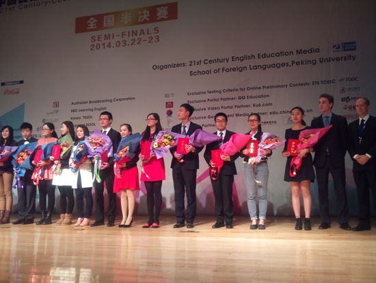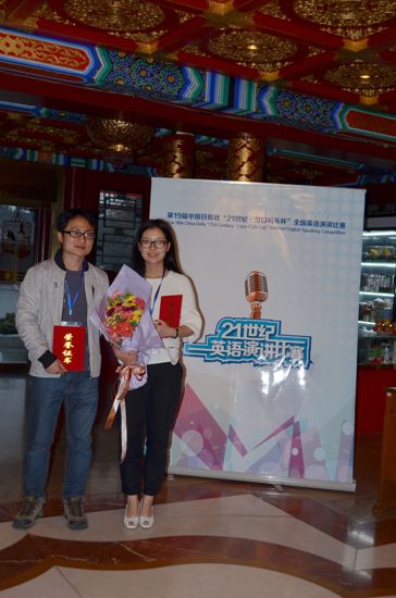 2014年3月21-24日,第十九届中国日报社“21世纪”全国英语演讲比赛总决赛在百年名校北京大学的百周年纪念讲堂举行,公司中美英语111班的汪丹露同学凭借在比赛中的出色发挥获得全国英语比赛全国三等奖,指导教师茅忆年也获“指导教师三等奖”。