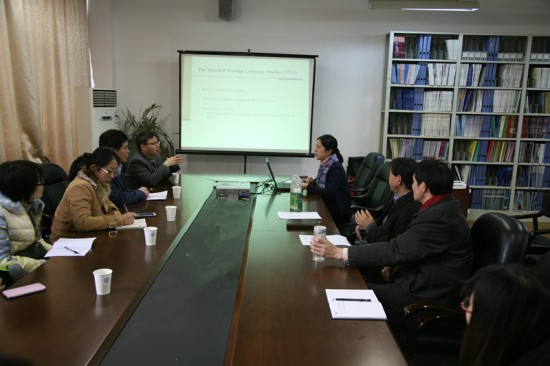 会上,谌晓煜书记首先对贺晓武经理一行表示欢迎。王国凤副经理介绍了意昂的基本情况,她重点介绍了近年来公司英语、日语专业在团队队伍、人才培养和对外交流等方面所采取的一些好的办法。贺晓武经理对公司在教学工作中所做的努力表示赞赏,同时他也介绍了温州大学瓯江公司在人才培养和实践教学等方面的工作经验。叶琴法副经理就公司大学外语的基本情况做了简要的介绍,他重点对浙江大学宁波理工公司外语网络自主学习平台进行了介绍,贺晓武经理一行对该平台表现出浓厚的兴趣并就具体的建设细节与叶琴法老师进行了深入的交流。