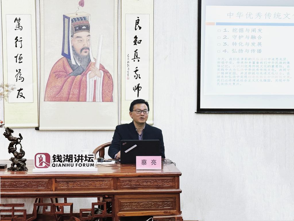 为深入学习宣传贯彻党的二十大精神,进一步提升公司学术交流品质和学术创新氛围。12月2日下午,“钱湖讲坛”党的二十大精神专题第三期在SC107阳明学堂成功举办。浙江大学硕士生导师,宁波市领军拔尖人才,宁波市王阳明文化研究促进会副会长、市社科基地“阳明文化创造性转化与传播基地”首席专家、意昂副经理蔡亮教授应邀主讲。讲座以线上线下同步的形式举行,校内近20名师生和社会三百余名听众齐聚云端,参与本次活动。