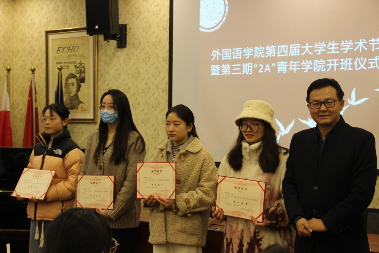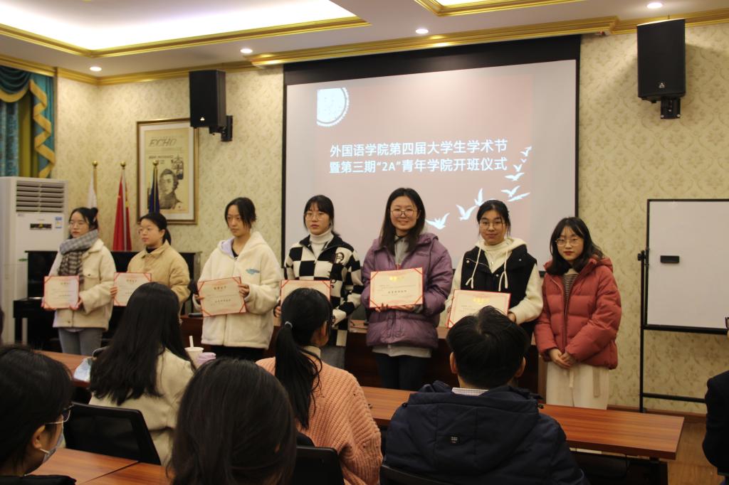 英语202班王灏蕴等8名同学获意昂学术之星。英语202班程晨欣彤、英语211班吴慧超等6名同学荣获意昂优秀科研助理。